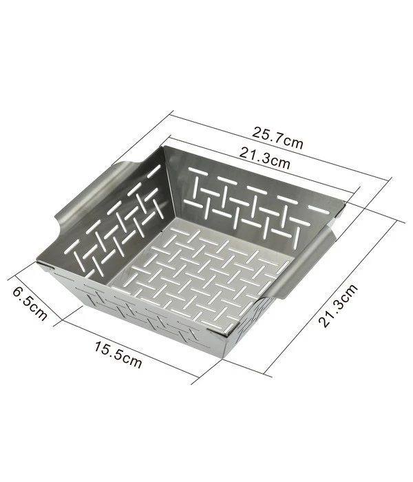 Sie lieben gegrilltes Gemüse, wollen sich die Zubereitung beim nächsten Barbecue aber erleichtern? Dann verwenden Sie doch einfach den BBQ Edelstahl-Gemüsekorb der Marke Dehner. In die großzügige und stabile Grillschale passen viele gesunde Leckereien wie Zucchini, Mais, Pilze oder Paprika, die Sie darin zu schmackhaften Speisen zubereiten können. Gestalten Sie Ihr Grillen abwechslungsreicher, indem Sie mit diesem optimalen Hilfsmittel neue Rezepte ausprobieren und das Gemüse noch knackiger hinbekommen. Egal, ob als leckere Beilage oder als raffiniertes Gemüsegericht, Sie werden die Aromen und die Konsistenz der Speisen aus dem BBQ Edelstahl-Gemüsekorb sicher zu schätzen wissen.