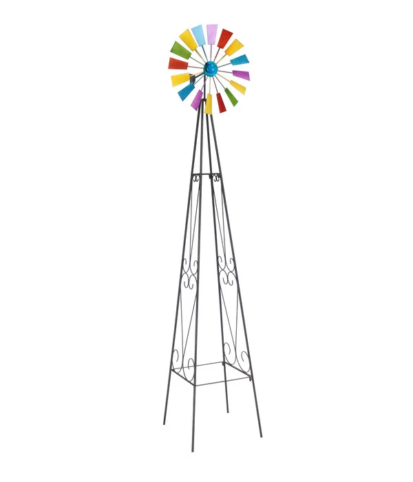 Lieben Sie es auch, entspannende Zeiten im Garten, auf dem Balkon oder in Ihrem Loungebereich zu verbringen? Stellen Sie es sich bildlich vor: Relaxt sitzen Sie auf Ihrem Gartenstuhl und blicken über den grünen Rasen auf Ihr buntes Blumenbeet, zahlreiche Topfpflanzen und dekorative Figuren. Zwischen dieser Pracht setzt der liebevolle Dehner Metall-Obelisk mit Windrad einen bezaubernden Akzent. Sobald eine leichte sommerliche Brise durch den Garten zieht und Blätter zum Rauschen bringt, dreht sich das Windrad in bunten Farben mit und komplettiert das Arrangement im Garten optisch in stimmungsvoller Weise. Fans von kreativen Dekorationen und effektvollen Gartenaccessoires werden den faltbaren Metallobelisk von Dehner zu schätzen wissen.