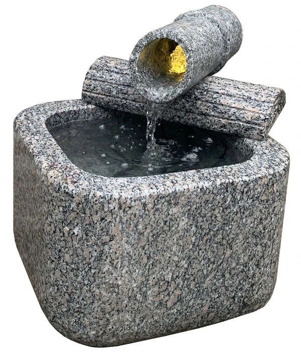 Ihr neues Gartenkunstwerk kann sich sehen lassen, denn es misst ca. 47 cm und ist eine wirkungsvolle Bereicherung für Ihr Gartenambiente oder die Terrassendekoration. Und wenn Sie schon bei Tag begeistert von Ihrer attraktiven Entdeckung sind, werden Sie bei Dunkelheit noch begeisterter sein! Denn der Dehner Granit-Gartenbrunnen Bambu ist mit einer warmweißen LED-Beleuchtung ausgestattet, die Ihr Wasserspiel in stimmungsvolles Licht taucht. Übrigens: Ob im Garten oder auf der Terrasse, der Brunnen wirkt inmitten von Bambus, anmutigen Gräsern oder auch als Akzent vor einer Rhododendron-/Azaleen-Kombination besonders gut!