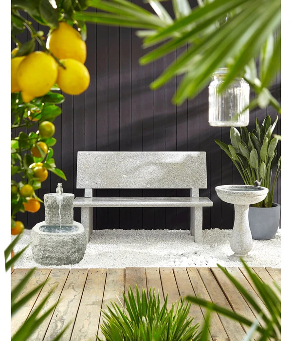 Ein schöner Sommertag, Sie sitzen entspannt auf der Terrasse und lauschen dem sanften Plätschern Ihres Wasserspiels, dessen „Musik“ von melodiösem Vogelgezwitscher begleitet wird. Ab und zu gönnen Sie sich einen Blick auf den hübschen Bronze-Frosch, der – als sei er von einer bösen Hexe verzaubert – unaufhörlich Wasser speit. Ja, mit dem Dehner Granit-Gartenbrunnen Froschkönig haben Sie eine wunderbare Wahl getroffen, denn seine romantisch-verspielte Note harmoniert perfekt mit dem üppigen Grün und der Farbenpracht Ihrer Blumenbeete. Neben der bezaubernden Bronze-Figur macht ihn aber auch das rustikale Design zu einem Deko-Highlight Ihrer Gartenanlage. Die roh behauene Oberfläche passt perfekt zu dem Bild des einsamen Brunnens irgendwo in einer märchenhaften Landschaft, wo einst die Prinzessin den verzauberten Prinzen traf. Lassen Sie ein Märchen wahr werden und bereichern Sie Ihren Außenbereich um den Dehner Granit-Gartenbrunnen Froschkönig – Sie werden jede Minute im Freien ab jetzt noch mehr genießen!