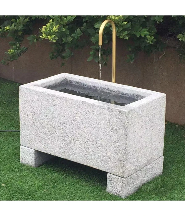 Massives Naturstein-Becken trifft edlen Wasserhahn: der Dehner Granit-Gartenbrunnen Salzburg ist äußerst reizvoll