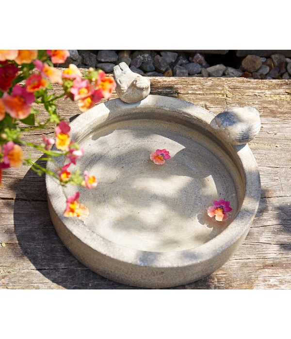 Viele Gartenbesitzer behaupten von sich, Vogelfreunde zu sein, aber in den wenigsten Gärten findet man Vogeltränken. Dabei sind sie so wichtig wie die Vogelhäuschen, manchmal sogar überlebenswichtig. Gerade in den heißen und trockenen Sommermonaten wird unsere Keramik Vogeltränke mit 2 Vögeln nicht nur zum Trinken aufgesucht, sondern auch gerne, um ein erfrischendes Bad zu nehmen. Und wenn Sie bisher noch nie zugeschaut haben, wie da nach Herzenslust geplanscht und gespritzt wird, werden Sie Ihre helle Freude daran haben, garantiert. Wichtig ist, dass Sie darauf achten, dass in der Keramik Vogeltränke immer ausreichend frisches Wasser ist. Außerdem sollten Sie die Keramik Vogeltränke auch immer einmal wieder säubern, um die Entstehung von Krankheiten zu verhindern. Doch die Keramik Vogeltränke wird nicht nur Ihren gefiederten Freunden gut gefallen, sondern mit ihrer zeitlos schönen Form und den Deko-Vöglein am Rand wird die Keramik Vogeltränke ein kleines Schmuckstück in Ihrem Garten sein.