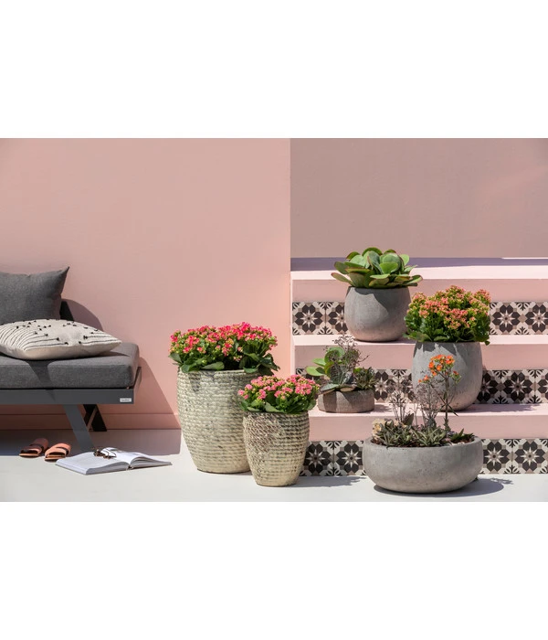 Dank ihrer hohen UV- und Wetterbeständigkeit ist die Schale besonders robust und ist zu jeder Jahreszeit ein echter Hingucker. Wenn Sie altert, setzt sie eine edle Patina an, die ihr einen leicht verwitterten Eindruck verleiht und sie nahezu mit der Umgebung verschmelzen lässt. So kommen Ihre Pflanzen perfekt zur Geltung! Durch ihr geringes Gewicht ist sie kinderleicht zu bewegen und kann immer wieder neu arrangiert werden. Ihrer Fantasie bei der Gestaltung sind keine Grenzen gesetzt.
