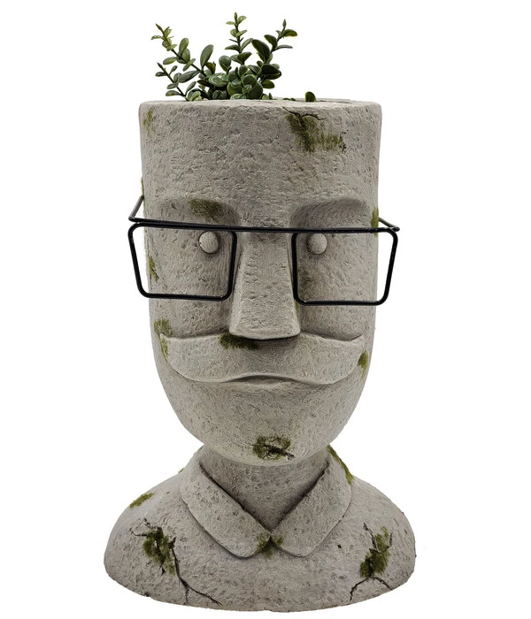 Ein charmanter Herr für Ihren Garten: Dehner Magnesia-Topf Kopf mit Brille