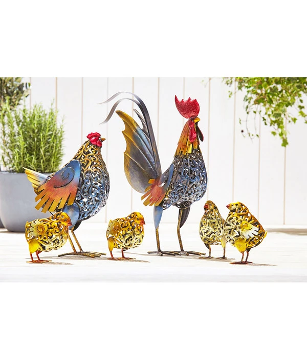Hühner und Hähne gehören zu den besonders beliebten Frühlings- und Osterdekorationen. So verbreitet der Dehner Metall-Hahn Toni beispielsweise zwischen mit Narzissen und Tulpen bepflanzten Blumenkübeln auf Ihrer Terrasse gute Laune. Ebenso gut kommt er neben Ihrer Sitzgruppe, dem Gartenschuppen oder mitten auf dem gedeckten Tisch beim Osterfrühstück zur Geltung. Wenn Sie den Dehner Metall-Hahn Toni neben die Küchenzeile stellen, leistet Ihnen der Frühaufsteher mit dem wachen Blick dort gern täglich Gesellschaft beim Kochen. Das Design des gefiederten Gesellen kann sich sehen lassen. Sein Körper wirkt luftig-leicht, denn er ist aus vielen Bögen und Schnörkeln zusammengesetzt. Wie der Körper sind auch die Schwanzfedern und die Flügel in changierenden Metalltönen von Platin über Kupfer bis Gold gehalten. Der rote Kopf bildet dazu einen intensiven Kontrast.