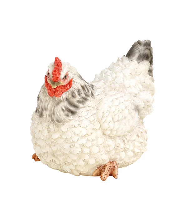 Wenn der Vogel jetzt anfangen würde zu gackern, Sie würden sich erst beim genaueren Nachdenken wundern. Richtig? Das ist wenig überraschend, denn die Polyresin Henne sieht einfach unglaublich echt aus. Jedes Detail an ihrem Aussehen und ihre typische Haltung sind bei dieser Polyresin Henne absolut naturgetreu getroffen. Wenn Sie also gerne etwas Bauernhof-Flair in Ihrem Garten hätten, dann gönnen Sie sich eine Polyresin Henne. Oder zwei oder drei. Lediglich die fehlenden Eier und das fehlende Gegacker werden das Tier dann noch von ihren lebenden Artgenossinnen unterscheiden. Unser Tipp: Verblüffen Sie Ihre Familienmitglieder, Freunde und Passanten, indem Sie die Polyresin Henne auf ein Häufchen Stroh zwischen die Pflanzen im Vorgarten setzen. Sicher werden alle bei ihrem Anblick innehalten und darauf warten, dass sich die Polyresin Henne endlich bewegt. Ganz gleich, ob Sie sich nun für eine Polyresin Henne entscheiden oder einen kleinen Hühnerhof in Ihrem Garten inszenieren möchten – Sie werden in jedem Fall von der Wirkung überwältigt sein.