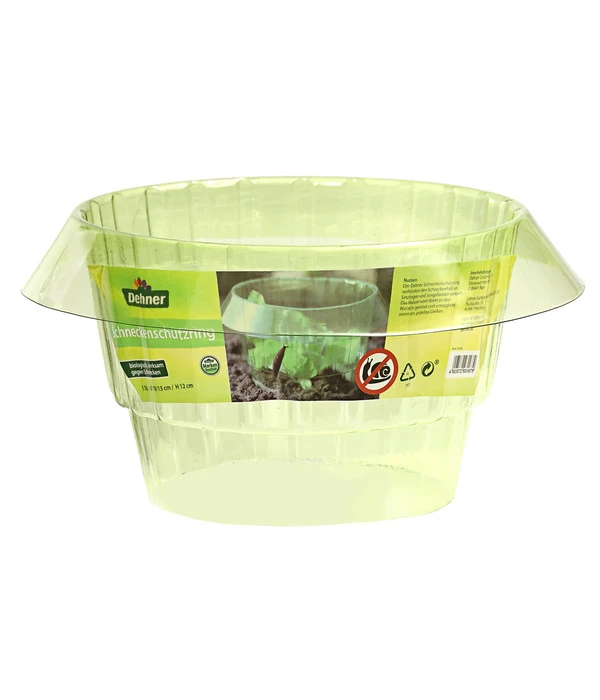 Sie wirken so verletzlich und unscheinbar, wenn sie in Zeitlupe dahin kriechen und bei jeder Erschütterung vor Schreck die Fühler einziehen. Aber Schnecken haben auch eine sehr unangenehme Seite, zumindest für Gärtner. Denn so gefräßig, wie sie sind, können sie ganze Beetbepflanzungen vernichten. Schützen Sie Ihren Salat und andere zarte Pflanzen mit einem Dehner Schneckenschutzring. Das ist so einfach wie wirkungsvoll. Der Dehner Schneckenschutzring wird aus robustem Kunststoff hergestellt und ist entsprechend mehrfach verwendbar. Der Abwehrmechanismus ist biologisch wirksam und mit einem Handgriff pro Pflanze für die gesamte Saison erledigt. Wer Schneckenfraß auf diese intelligente Weise vorbeugt, handelt gleichzeitig auch noch umweltbewusst.