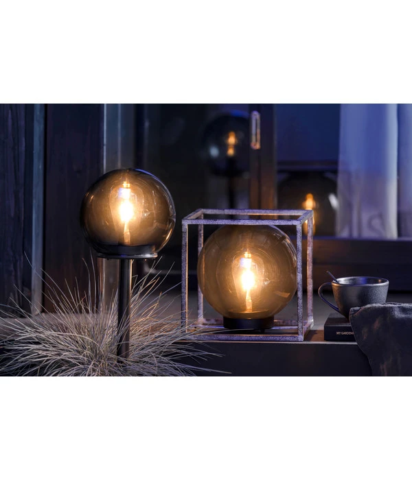 Die Solar-Glaskugel Siero von Dehner besticht durch ihre edle Optik und das elegante Rauchglas, aus dem die Kugel gefertigt wurde. Das quadratische Metallgestell der Leuchte rundet das Erscheinungsbild ab. Die Glaskugel lässt sich hervorragend mit Ihrer Bepflanzung kombinieren und sorgt so für ein perfekt abgestimmtes Ambiente. Machen Sie Ihren Garten oder Ihre Terrasse zu einem noch gemütlicheren Ort der Erholung und Entspannung für sich und Ihre Liebsten mit dieser schönen und dekorativen Solarleuchte!