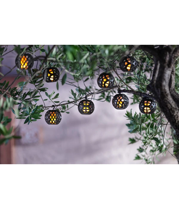 Wenn Sie Ihr Zuhause gerne in ein idyllisches Ambiente tauchen möchten und es mit einer verträumten Beleuchtung ergänzen wollen, ist die Solar-Lichterkette Flame in Dehner Markenqualität bestimmt eine ideale Wahl für Sie. Die einzelnen Elemente haben eine schicke trendige Kugel-Form, deren Anblick mit einer reizvoll durchbrochenen Optik erfreut. So können Sie für besondere Akzente in Ihrem Außenbereich sorgen. Verwandeln Sie zum Beispiel Ihre Terrasse oder den Balkon für die nächste Grillparty in eine romantisch beleuchtete Oase. Auch das Gartenhäuschen oder der Bereich um den Teich herum wird zu einem stimmungsvollen Blickfang mit der Solar-Lichterkette Flame von Dehner.