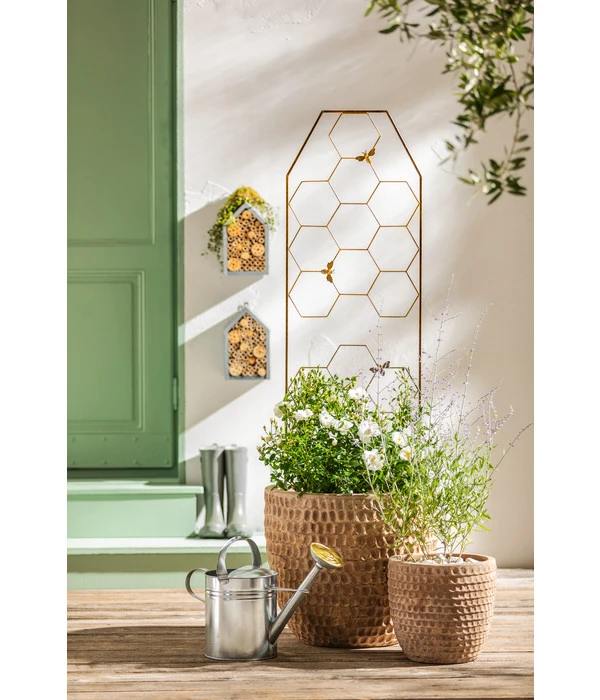Wenn Sie auf Ihrem Grundstück eine südländische Atmosphäre schaffen wollen, ist der Dehner Terrakotta-Topf Adria wie für Sie geschaffen. Das Gefäß zeichnet sich durch seine extravagante Reliefstruktur aus und sieht dadurch wie von Hand gemacht aus. Dank seiner harmonischen Farbgestaltung fügt sich der Pflanztopf in jedes Ambiente perfekt ein. Er passt sowohl an jeden Platz in Ihrem Garten als auch auf Ihre Terrasse oder Ihren Balkon. Als Kombi-Partner mit südlichem Flair eignen sich zum Beispiel Zitronen- und Olivenbäumchen sowie kleine Bananenstauden. Auch ein Flaschenputzer, eine Wandelrose oder ein Hibiskus kommen hervorragend in dem Terrakotta-Topf aus dem Hause Dehner zur Geltung. Versehen Sie den Pflanztopf Adria einfach mit einem Untersetzer und Sie können ihn im handumdrehen auch in Ihren vier Wänden nutzen.