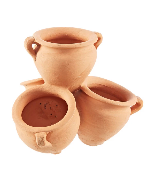 In einer guten Küche ist die tägliche Verwendung von frischen Kräutern und Gewürzen selbstverständlich. Ob selbst gezogen aus Samen oder als fertige Pflanze im Handel gekauft, benötigen die Gewächse einen Platz, an dem sie sich wohlfühlen. Der Terrakotta-Topf Budapest ist aus robuster Terrakotta gefertigt. Er besteht aus mehreren kleinen Töpfen, die sich ideal zur Bepflanzung mit Kräutern, Gewürzen oder auch Erdbeeren und Blumen eignen. Ihre Pflanzen finden in diesen Töpfen ideale Wachstumsbedingungen vor, da es sich bei Terrakotta um ein natürliches Material handelt. Im Vergleich zu Kunststoff-Töpfen „atmet“ Terrakotta durch seine feinporige Struktur und speichert Feuchtigkeit. Da manche Pflanzen etwas mehr Platz benötigen, erhalten Sie den Terrakotta-Topf Budapest in zwei Größen. Die Ausführung mit 26 Zentimeter Durchmesser ist geeignet für kleinere Pflanzen wie zum Beispiel Kresse oder Schnittlauch, die größere Version mit 37 Zentimeter Durchmesser bietet genügend Platz für Erdbeerpflanzen oder Blumen.