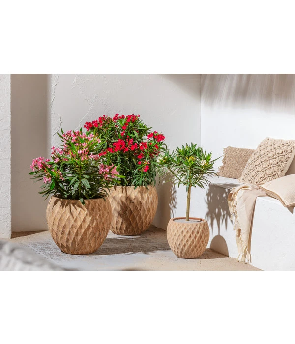 Ein Urlaub unter südlicher Sonne geht viel zu schnell vorbei. Holen Sie sich ein wenig von der schönen Stimmung in Ihren Garten. Mit dem Dehner Terrakotta-Topf Imperia gelingt Ihnen das im Handumdrehen. Stellen Sie den Topf einzeln oder gruppieren Sie gleich mehrere Töpfe zusammen. Wählen Sie passende Pflanzen aus, die sowohl im Süden zuhause sind und sich auch im hiesigen Klima wohlfühlen. Die warme Ausstrahlung der hochwertigen Terrakotta mit der antiken Musterung gibt Ihrer Terrasse, Ihrem Balkon oder Ihrer Gartenecke eine besondere Ausstrahlung. Der Dehner Terrakotta-Topf Imperia wird Sie begeistern.