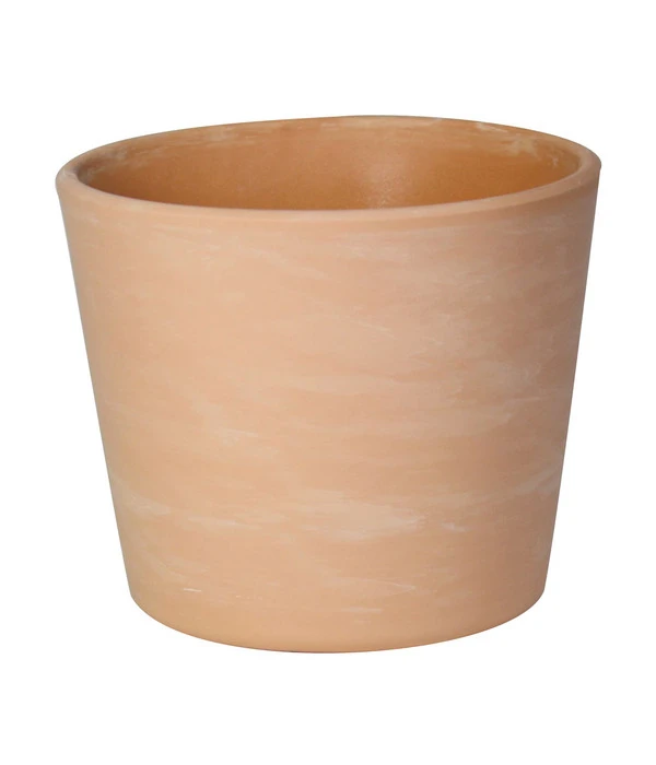 Weinberge, Olivenhaine, Zypressen, Pinienwälder, reizende Städtchen und weitläufige Sandstrände – das ist die Toskana. Alleine der Gedanke an diese traumhafte Landschaft weckt Sehnsucht und Urlaubsgefühle. Zu der wunderschönen Toskana gehören unwiderruflich Terrakottatöpfe in vielen verschiedenen Größen und Varianten. Holen Sie sich ein bisschen mediterranes Ambiente nach Hause mit unserem Übertopf aus Terrakotta. Die bewusst schlicht gehaltene Form und die dezente Marmorierung passen sich perfekt jeder Pflanze an. Die Außenseite hat die typisch matte Terrakottaoptik, auf der Innenseite ist der Übertopf glasiert um unschöne Wasserflecken zu vermeiden. Den Übertopf aus Terrakotta gibt es in vielen verschiedenen Größen, sodass bestimmt für jede Ihrer Pflanzen die passende dabei ist.