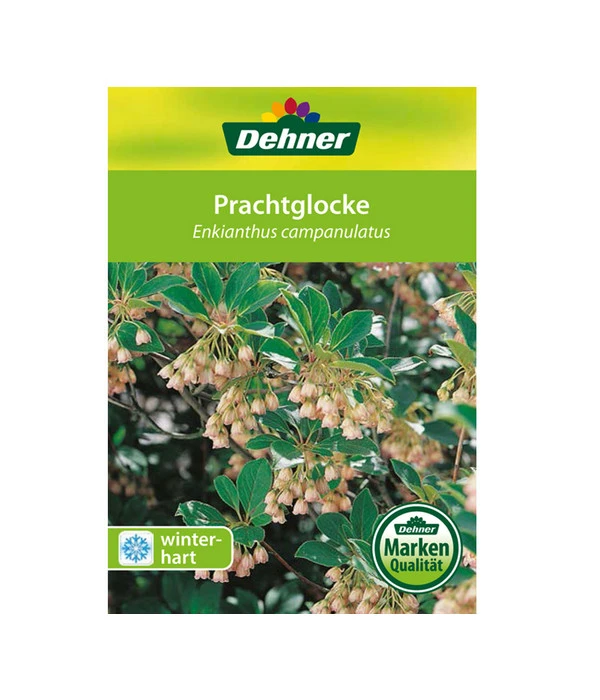 Dieser Zierstrauch macht seinem Namen tatsächlich alle Ehre! In dichten Büscheln hängen die glockenförmigen Blüten an den Zweigen und leuchten in allen Variationen von weißlich-gelb bis rosarot zwischen dem blaugrünen Laub. Und dieses reizvolle Glockenspiel können Sie von April/Mai bis manchmal Juni beobachten. Und würde diese frühsommerliche Blütentracht schon ausreichen, um die Prachtglocke zu einem Ihrer Lieblingssträucher im Garten zu machen, so lässt es sich das Ziergehölz nicht nehmen und macht noch ein zweites Mal im Jahr auf sich aufmerksam. Im Herbst nämlich schmückt es sich mit einer gelb bis feuerrot leuchtenden Herbstfärbung, dass sich viele andere, für ihr Herbstlaub berühmte Gehölze in Ihrem Garten anstrengen müssen, mitzuhalten. Und beeindruckend ist schließlich auch die ganze Erscheinung der Prachtglocke. Mit ihrem straff aufrechten Wuchs und den etagenartig abstehenden Seitenästen ist das Ziergehölz ein besonderes Schmuckstück, auf das Sie nicht verzichten sollten. Bereichern Sie Ihre Gartenanlage mit diesem außergewöhnlichen Ziergehölz!